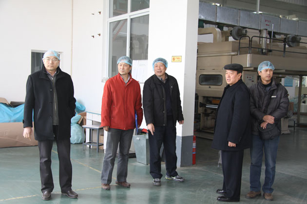 楊昌福總經(jīng)理與曲師大領(lǐng)導專家教授在制袋車間考察
